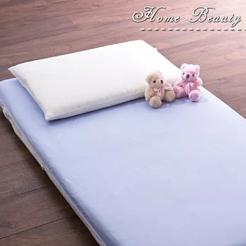 Home Beauty 嬰兒精梳棉防蹣抗菌乳膠墊枕/羊毛被/床墊組-粉藍